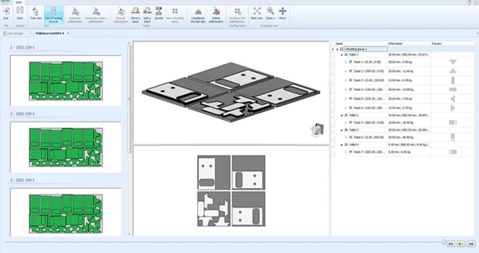 - New palletizing module for the evacuation of cut parts.