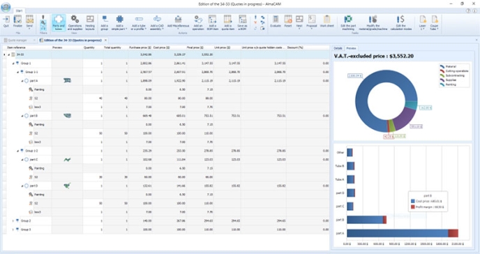 - Sheet metal quoting and management of quote requests via the web (Almaquote, Webquote).