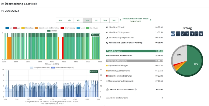 PRODUCTION MONITORING - Machine status and shop floor activities are recorded and displayed in real-time