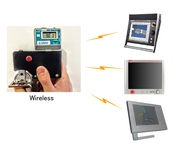 WIFI connection enables direct communication of readouts to the machine NC controller or to Excel spreadsheets including automatic cell advance for recording multiple readings.