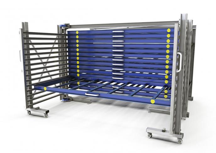 TwenTower towers are drawer storage racks with manual or electric opening for the storage of bundles of sheet metal or tubes. The dimensions range from 2,000 x 1,000 mm to 4,000 x 2,000 mm with various drawer filling heights and load capacity per drawer. For special sizes, Storemaster offers the GigaTower with sheet sizes up to 16,000 x 4,500 mm and a load capacity of 20 tons per drawer. The TwenTower is also characterised by the fact that the sides of the TwenTower can be folded or unfolded to take up the minimum amount of space in the workshop.